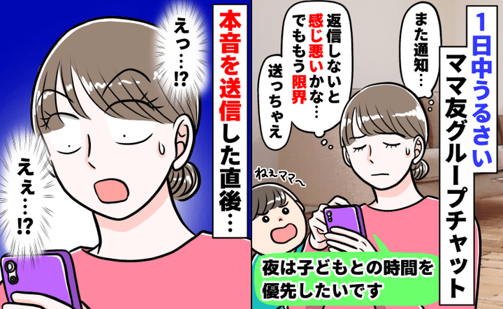 3. ママ友グループLINEが1日中うるさい「子どもとの時間を優先したい」本音を送信…え?返信が次々と