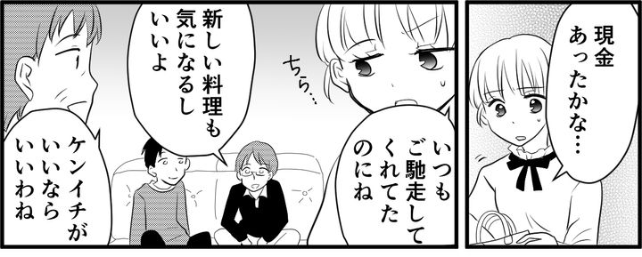 義妹は財布を確認しようとしつつ、ボソッと「いつもご馳走してくれてたのに」と言いました。