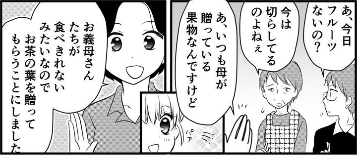 そして食事会の終盤。母から贈られてくる果物について私が話題に出すと、義妹は期待の眼差しで見てきました。また箱ごと持ち帰れるとでも思ったのでしょうか。