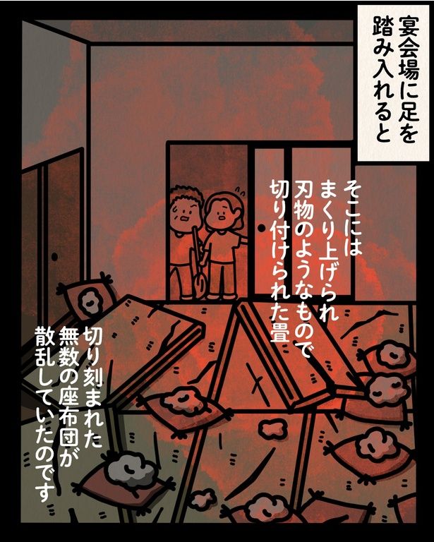 3. 刃物のようなもので切り付けられた畳。切り刻まれた座布団。犯人の目的は一体…?/身の毛がよだつゾッとした話