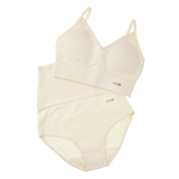 着心地抜群!ニットランジェリーで、冷え対策もばっちり。ニットソフトブラレット¥6,490 ハラマキショーツ¥6,490()
