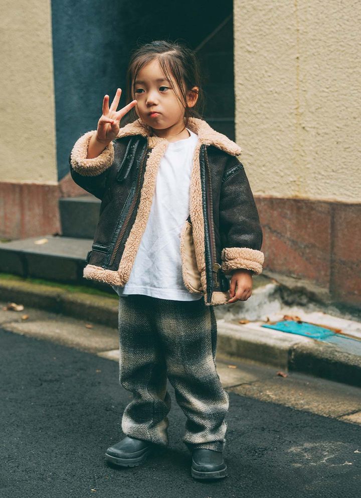ブラック×ブラウンでつくる冬のファミリーコーデがおしゃれ! ハットやレザーとクールなアイテムを纏いながらも、ハートやピンクで甘さを足して、家族全員で甘辛MIXに仕上げたのがポイント。プチプラを上手く取り入れたスタイリング術は、ぜひ参考にしたい。