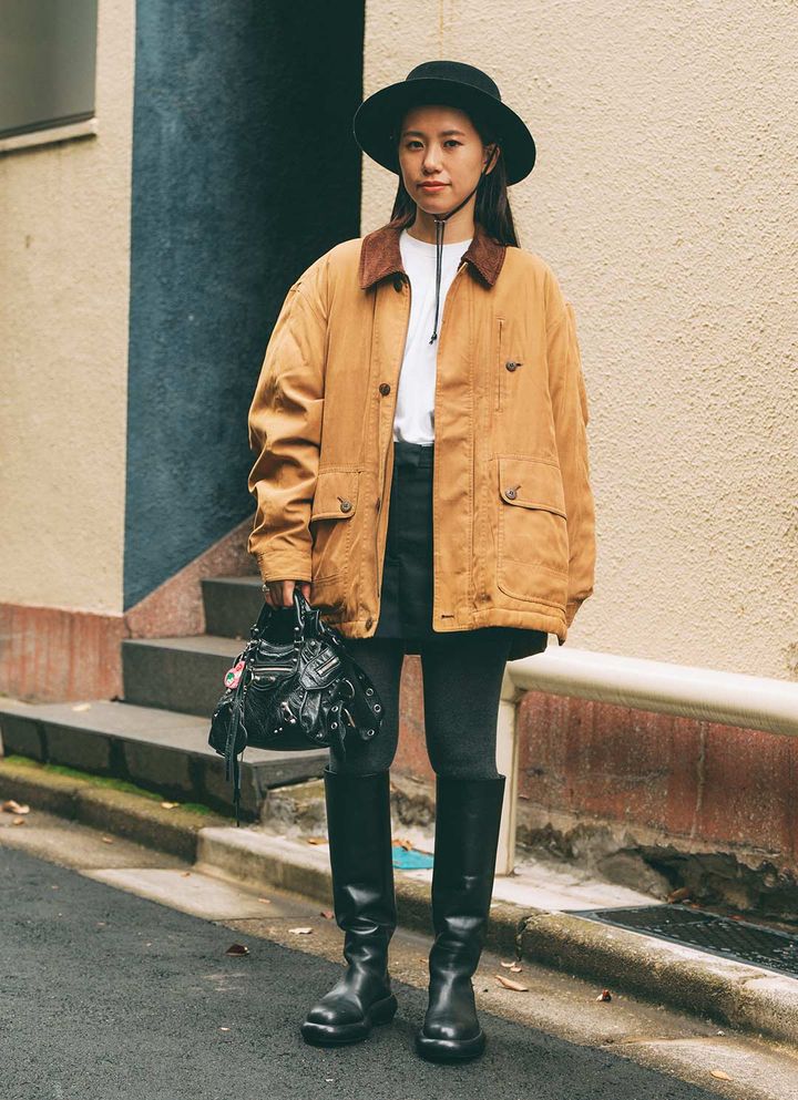 ボリュームのあるブラックシューズで、メリハリを付けて。ゆったりとしたボトムスとも好バランス♪