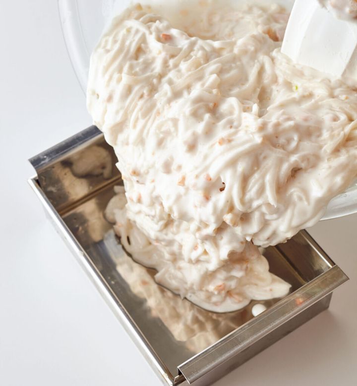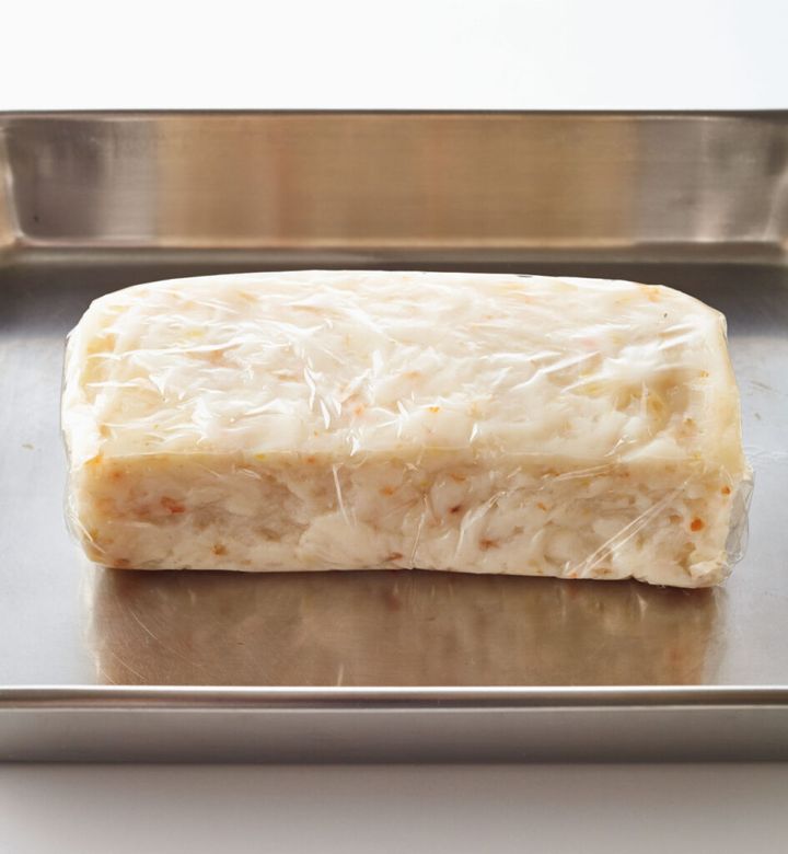 ※流し缶がない場合は、同じくらいのバットや耐熱の保存容器などで代用できる。その場合、側面にごま油を薄く塗り、底面にオーブン用シートを敷くと、型から出しやすい。