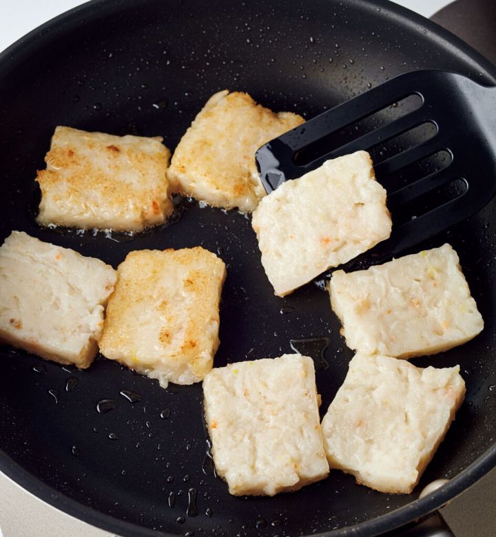 手間をかけた分だけ、ひと口目から違いを感じられる本格大根餅。蒸して冷凍しておけば、食べたいときに焼くだけで、香ばしい一皿が完成します。