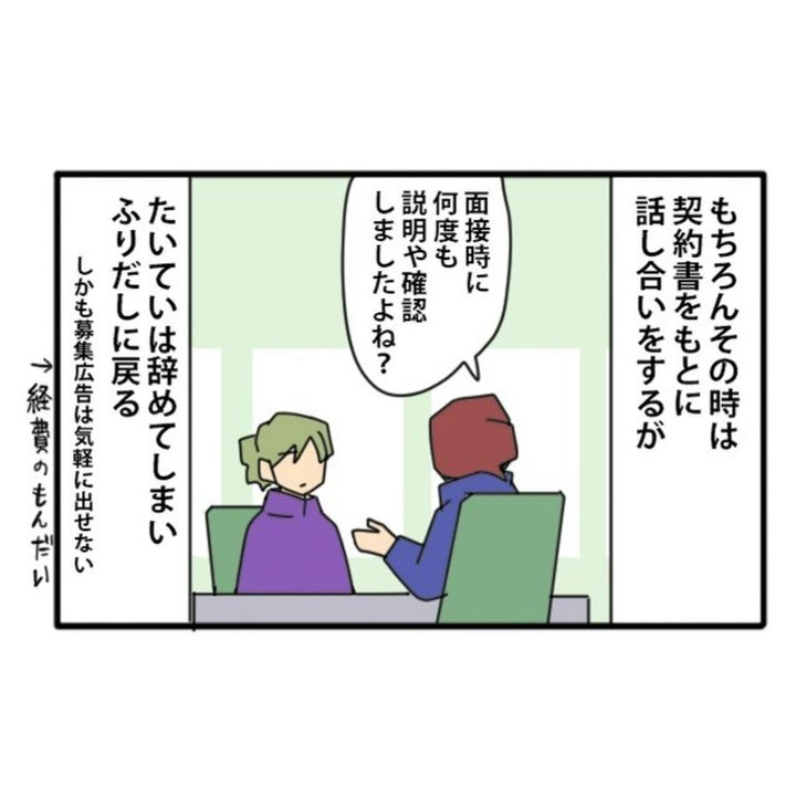 中途社員・Tさんの勝手な言動により、現場が混乱。元々、アルバイトの中では「平日メイン出勤」と「土日も出勤」組とで対立があり、Tさんのせいでさらに悪化。現場の不満が高まり「現場には社員が常にいるべき」という要望が出始めます。