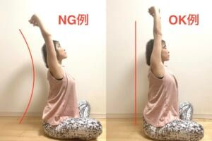 この時に背中が反らないよう、お腹を引っ込めて、背中をまっすぐにすることを意識しましょう。