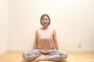 写真のように、足の裏がそれぞれ体にくっつくように、あぐらで座ります。