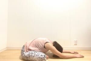 お尻が床から浮かないように、お尻を床につけるように意識してみましょう。