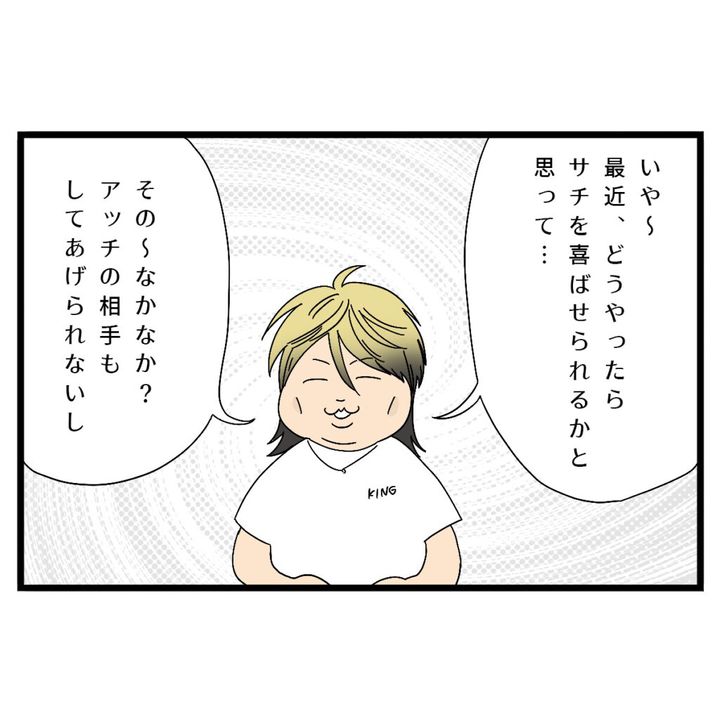「いや~最近どうやったらサチを喜ばせられるかと思って・・・」信也さんは、事前にチャットで伝えていた通りの相談を切り出しました。ところが次の瞬間、ニヤリと口角をあげると、「その~なかなか?アッチの相手もしてあげられないし」と、子どもの前だというのに場の空気を一変させる問題発言をしたのです。