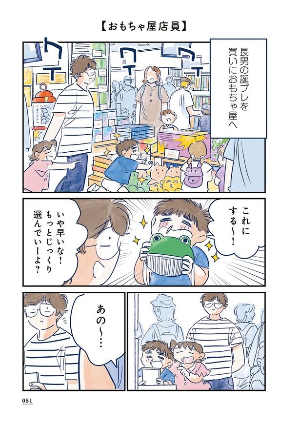 3. 子どもたちを連れておもちゃ屋へ。周りの客がやたら声をかけると思ったら――!?/育児の全部 楽しんでます。