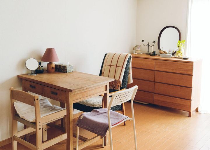 「仁平古家具店」で見つけたデスクや、インスタグラマー「しょ~こ」さんの自宅フリマで受け継いだミラーなど、インテリアに古いものを生かして。