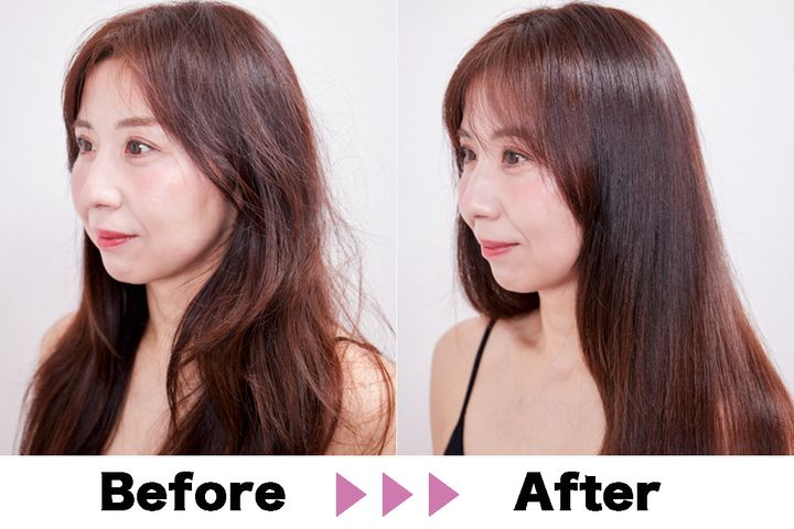 乾燥による髪のパサつきとうねりが気になるロングヘア。乾かした後は指通りの良い、サラサラしっとりな仕上がりになりました。