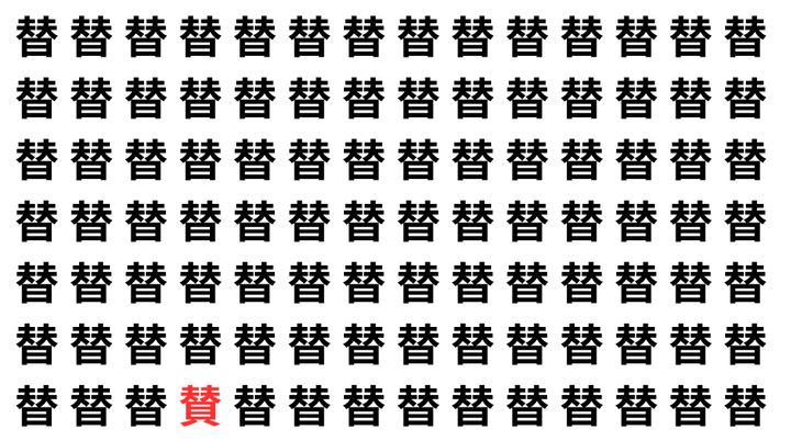 たくさんの「替」の中に、よく似た別の漢字が1文字だけ隠れています。