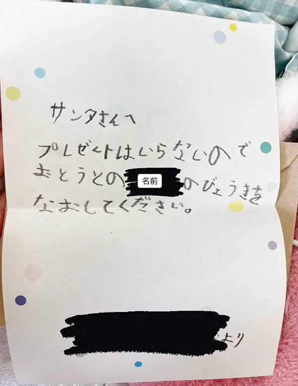 2. 『サンタへの手紙』を書いた小1息子 プレゼントを断った理由に「涙が止まらない」「胸がぎゅっと締め付けられた」の声