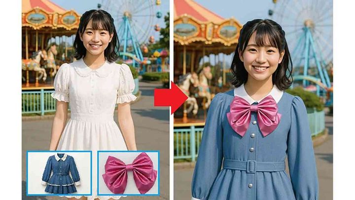 筆者が実際に同じ写真で人物の衣装の着せ替えを行った場合、Nano Bananaは元の人物の顔を維持したまま自然な仕上がりを再現しており、顔の一貫性が非常に高いことが確認されました。これまで生成AIは、同じ顔で一貫して画像を生成することが難しかったため、この機能はミニドラマ制作などの素材作成において非常に有効です。