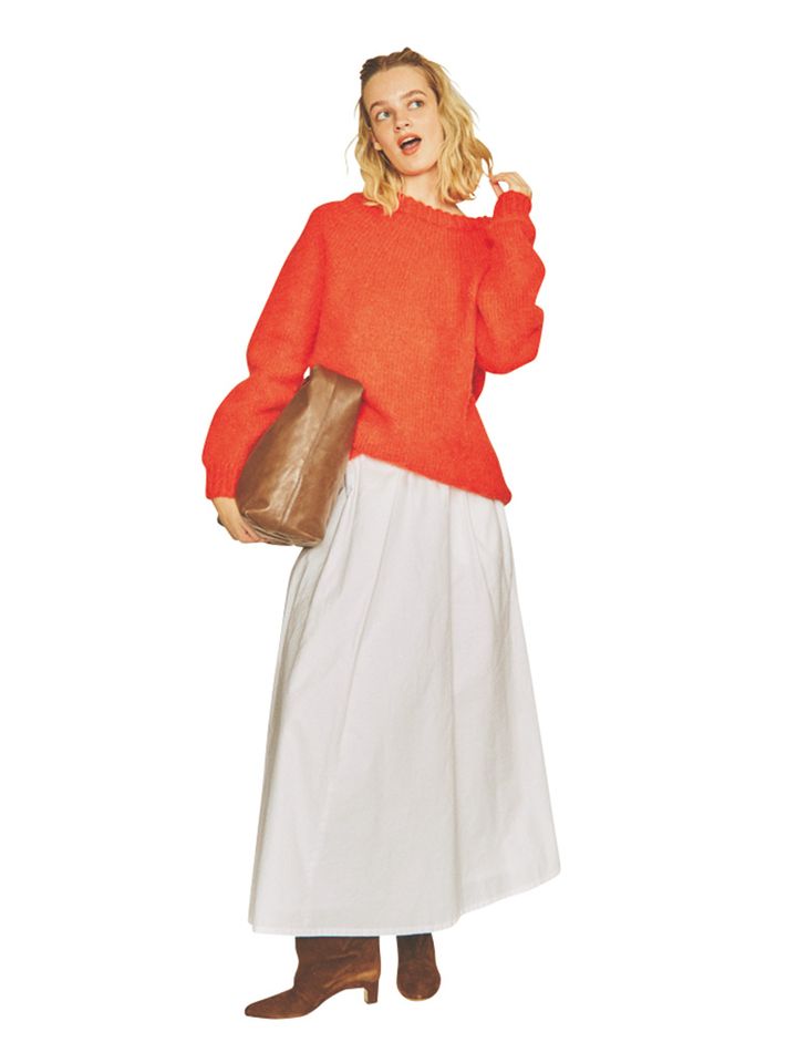 ヴィヴィッドカラーでも気張らず使える、やわらかなニットをレコメンド。サイズや素材感の力を借りて、デイリーに使える華やかさに。