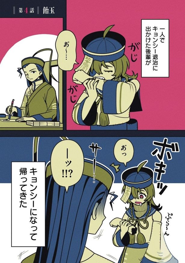 3. 何かを噛まずにはいられない。キョンシーになった後輩に好物の飴玉を与えてみると?/キョンシーになった後輩④