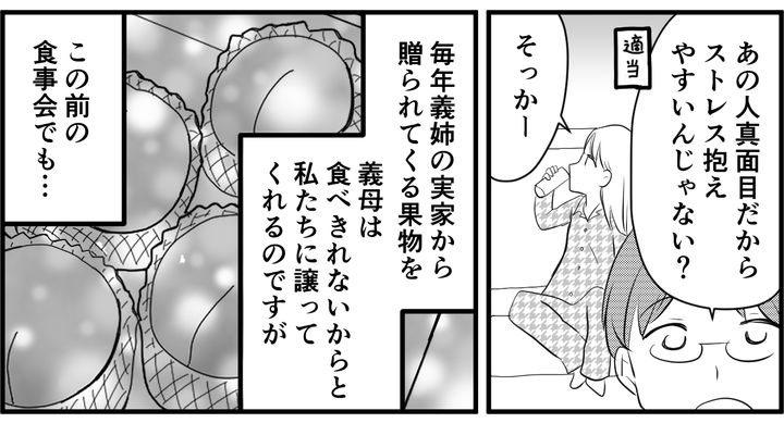 夫にも聞いてみましたが、適当な返事しか返ってきません。先日の食事会でも、義母が義姉の実家から贈られてきた果物を「食べきれないから」と言っていつものようにくれたのですが……。