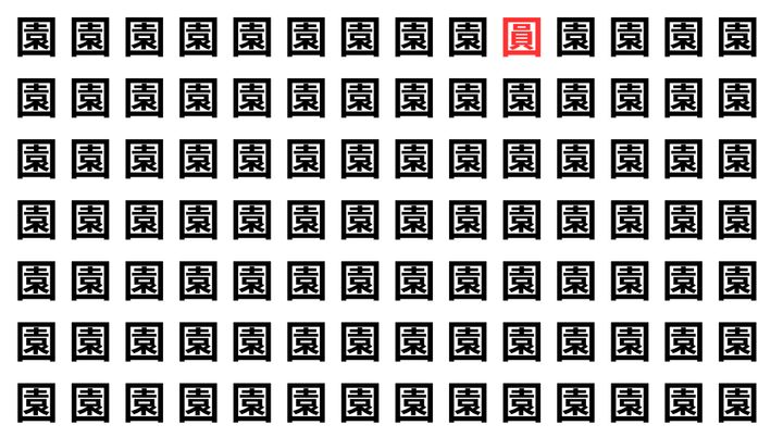 並んだ漢字の中に、ひとつだけ異なる文字が紛れています。集中して探し出し、気分をリフレッシュしましょう!