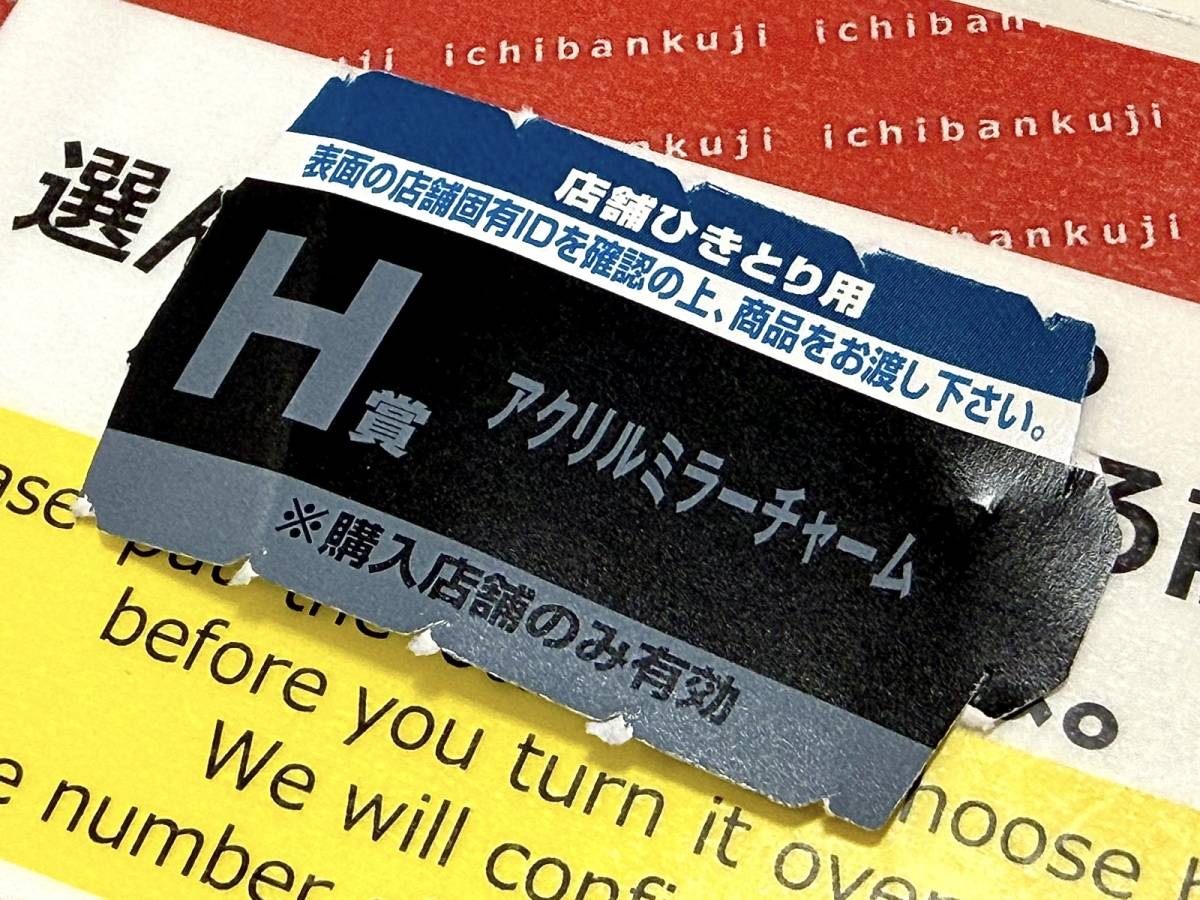 残念ながら上位賞は当てられずで、「H賞 アクリルミラーチャーム」をゲットしました。