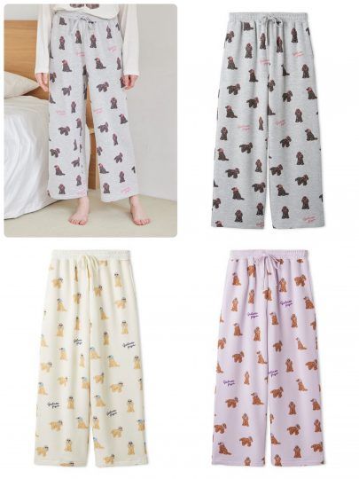 ぜひ、わんちゃんのスカーフ柄とお揃いにしたい、レトロポップな総柄パンツ。