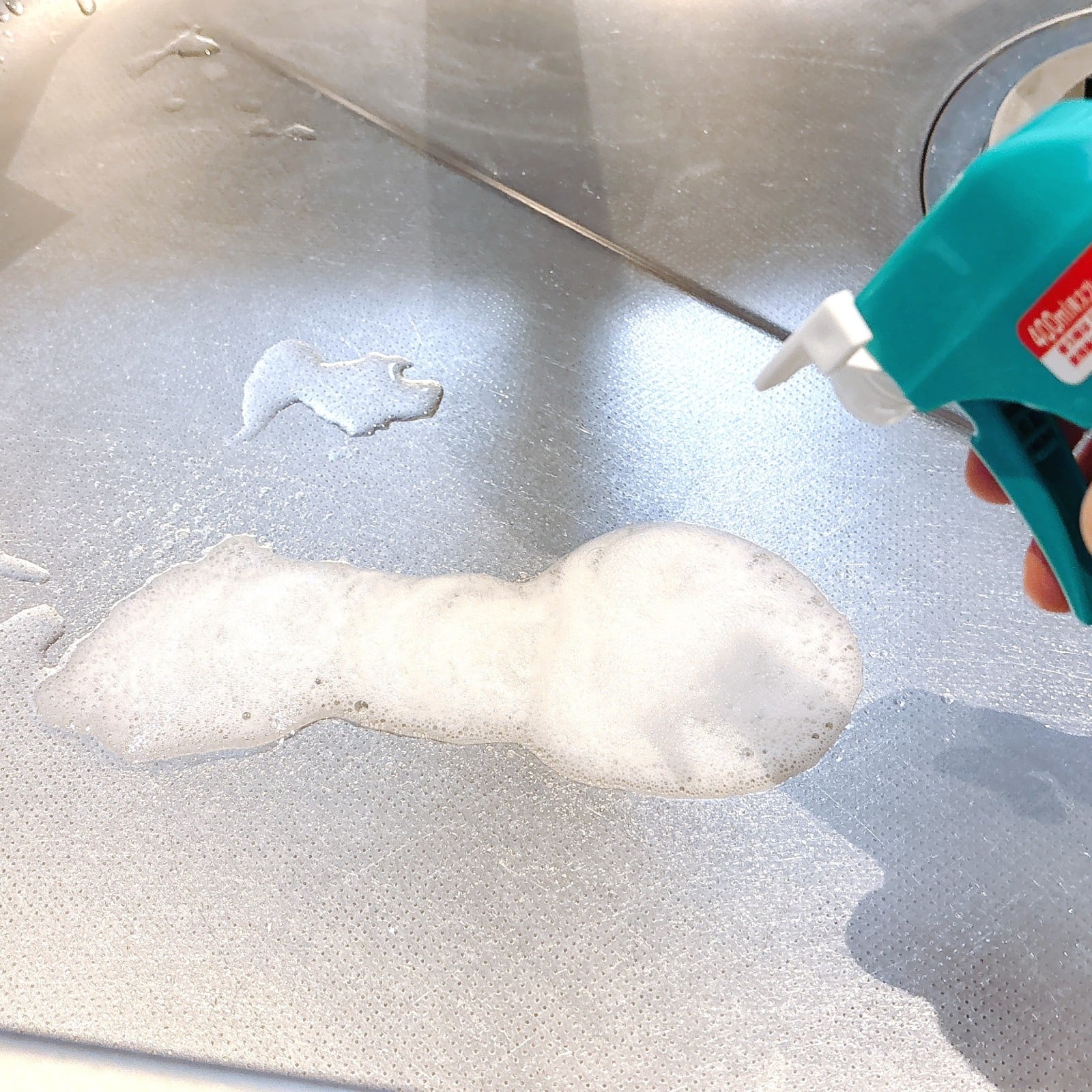 人工大理石の場合は、表面が変色して元のツヤが戻らなくなるおそれも……。キッチンシンクのお手入れに酸性洗剤を使うなら、クエン酸スプレーなど強力すぎないもので十分です。強酸性の使用は避けてください。