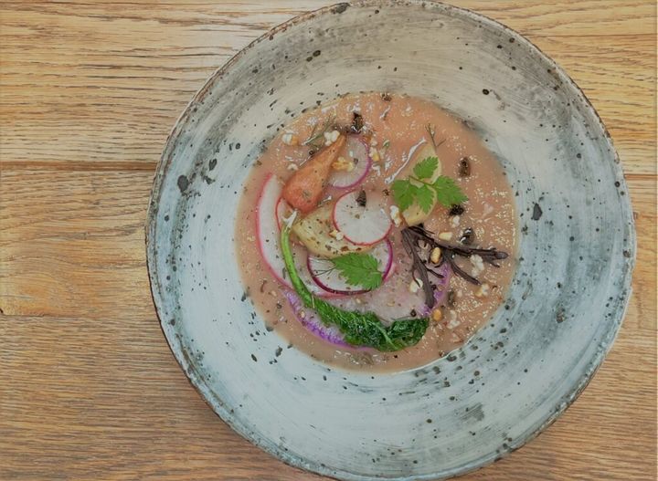 「酒蔵の方と赤カブ農家の方と、オリーブを作っている方とをひとつにまとめることができるのは料理人だけ。僕たちはお料理を通してこの土地を感じてほしい」と語るハタノさんの言葉から、料理への愛があふれていた。