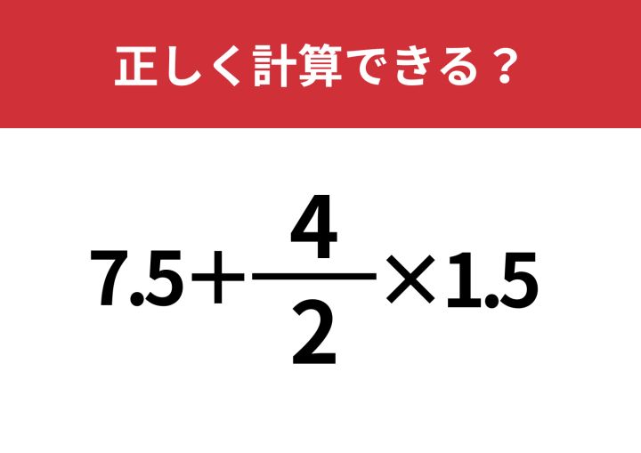「7.5+4/2×1.5」正しく計算できる?