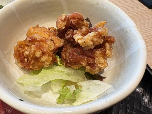 唐揚げは2つ。サクッと香ばしく、こちらも肉のうまみがジューシーでした。
