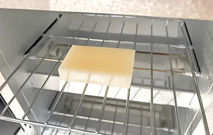 餅の上に『切れてるチーズ』をのせ、トースターに戻してさらに1分ほど焼いてください。