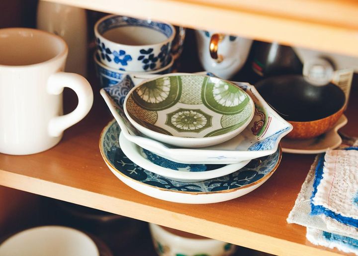ひとり暮らしを機に食器も以前の半分の量に。5枚セットの食器は1枚を基本にしたが、割れたときを考えて2枚残したものも。
