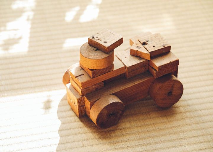 長女の小学生のときの絵と、長男が幼稚園で作った木工作品だけは残して飾っています」