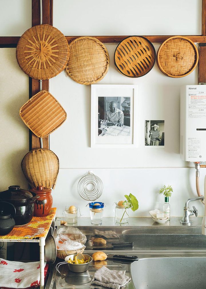 電子レンジの代わりにせいろが活躍。「この部屋、植物がよく育つの」と本田さん。水栽培しているアボカドがリズミカルに並ぶ。