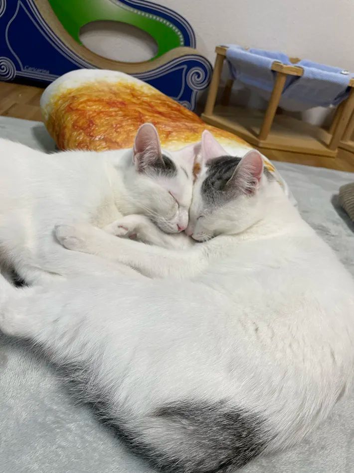 2匹でくっついて眠る猫(提供:猫カフェmfmf)