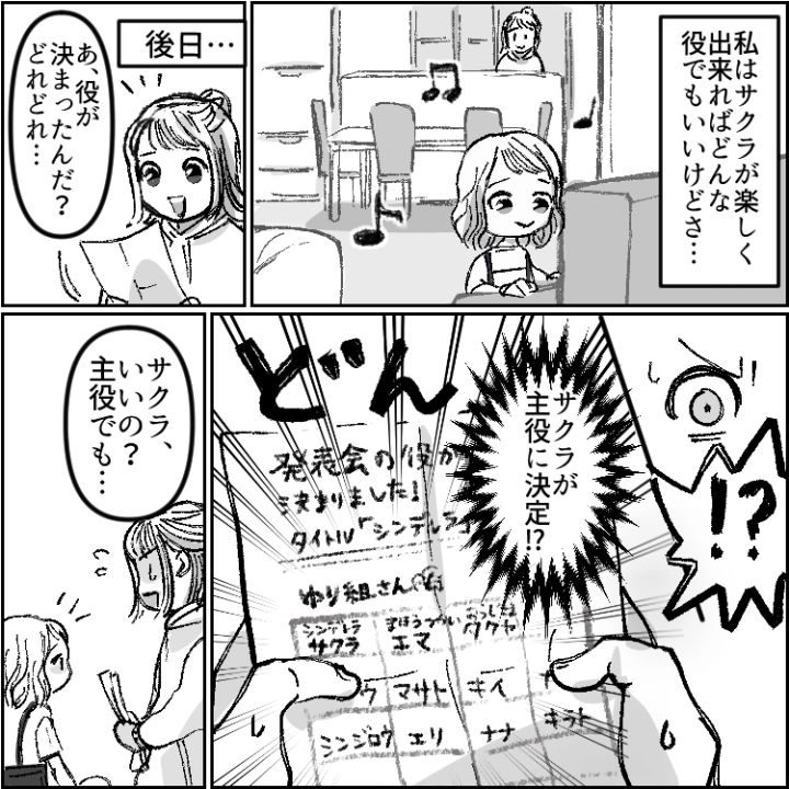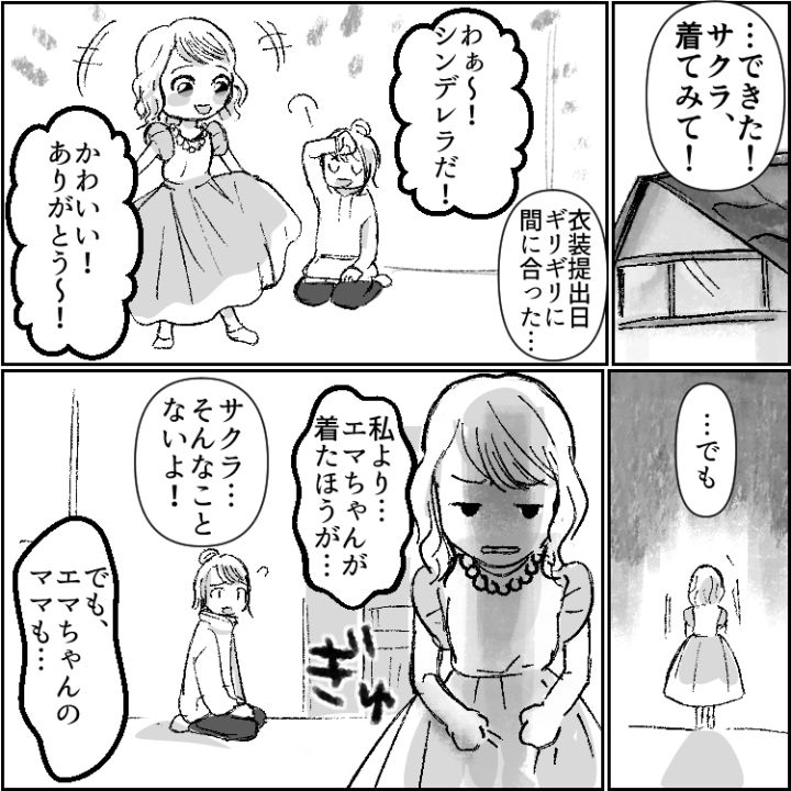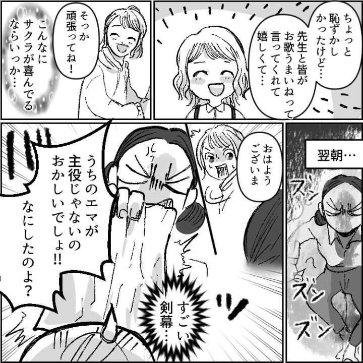 そんなある日、劇の配役が発表される。なんと主役はエマちゃんではなく、マミの娘・サクラだった。