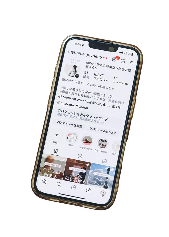 「これまでは悲しい出来事があっても気持ちに蓋をしていましたが、インスタグラムの投稿を機に、自分がどう感じたのかを意識するように。母の看取りや実家の片づけの投稿には、同世代の方からたくさんコメントをもらい心強かったです」