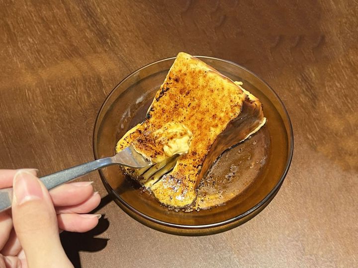 フォークを入れるとブリュレのパリッと感を感じられ、中からとろっとしたチーズが出てきます。