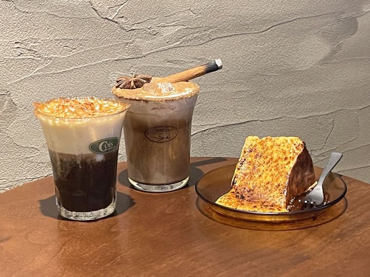 今回は「cois espresso club」の看板メニューである「ブリュレバスクチーズケーキ」、おすすめドリンクの「ブリュレエスプレッソ」と「コイスラテ」をご紹介します。