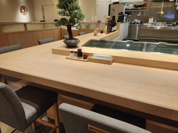 店内はゆったりとしたソファタイプのテーブル席の他、カウンター席も。盆栽が飾られ、和の雰囲気を感じる落ち着いた空間です。