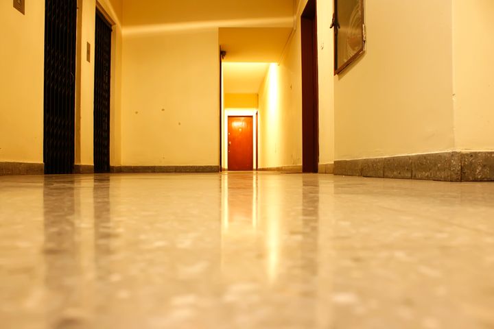 廊下の真ん中に薄汚れた一足の“赤いスニーカー”がポツリと置いてありました。