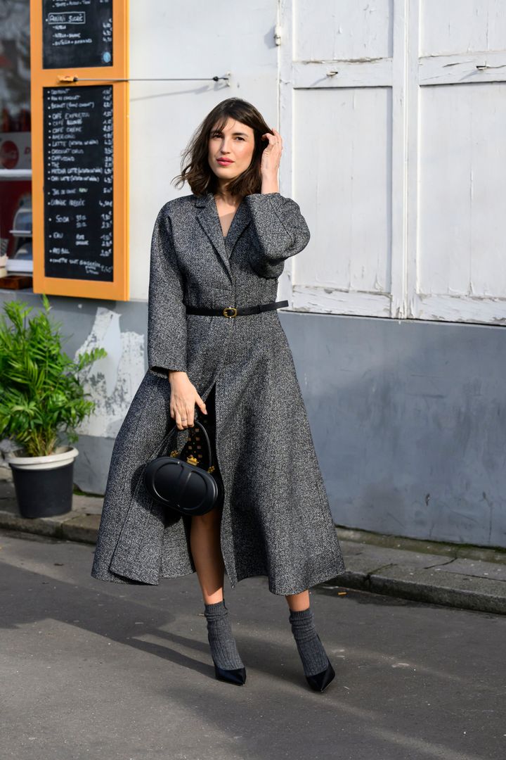 シックにもエレガントにも着こなせる、チャコールグレーのツイードコートはエレ派のマストハブアイテム。細ベルトやクラシカルなハンドバッグなど、クラス感のある小物使いで格上げ!