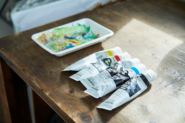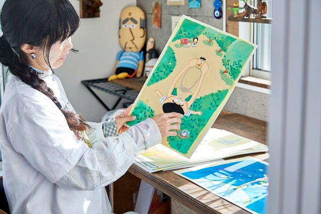 カラフルなアクリル絵具やペンがデスクに並び、窓から穏やかな光が差し込む尼崎市のアトリエで出迎えてくれたのは、絵本作家のホッシーナッキーさん。
