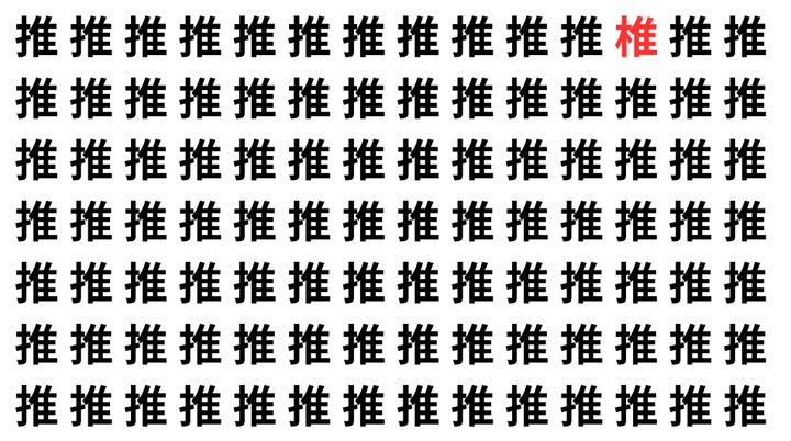 たくさんの「推」の中に、よく似た別の漢字が1文字だけ隠れています。