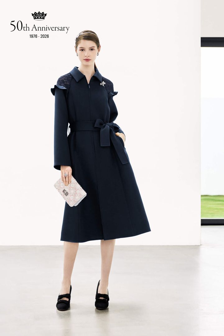 まとうだけで自然と背筋が伸びる、美シルエットのプリマコートも見逃せません。季節の始まりにふさわしい、気品と華やぎを併せ持つ一着です。