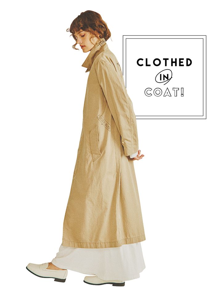 ベージュショップコート/マディソンブルー 中に着た白ロングワンピース/takes.(Shinzone ルミネ新宿店) ローファー/HARUTA
