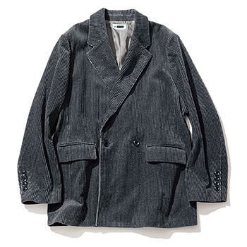 グレーコーデュロイジャケット/エイチ ビューティー&ユース チャンキーな素材は身幅が広すぎない形でセレクト。コーデュロイのカジュアルさに肩が落ちないダブルタイプの端正さが調和し、キレイだけど気張らないバランスのとれた1枚に。実用性の高いビッグポケットを配置。