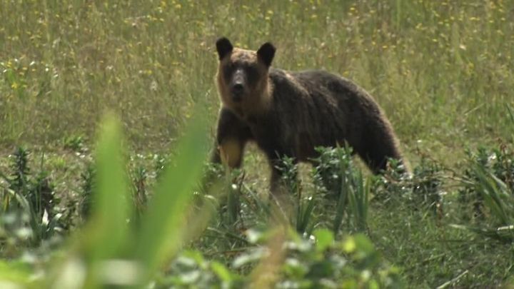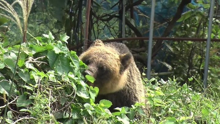 ヒグマは爆竹の音に怯みその場を離れたものの、数分後に再び姿を見せました。