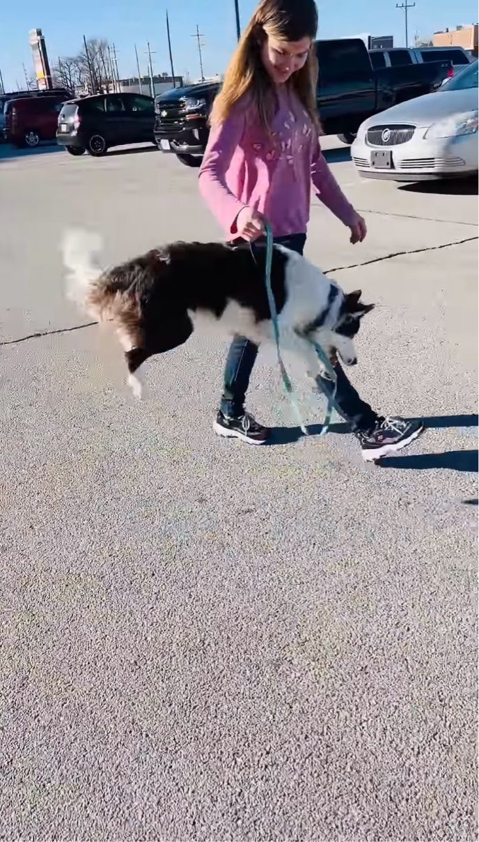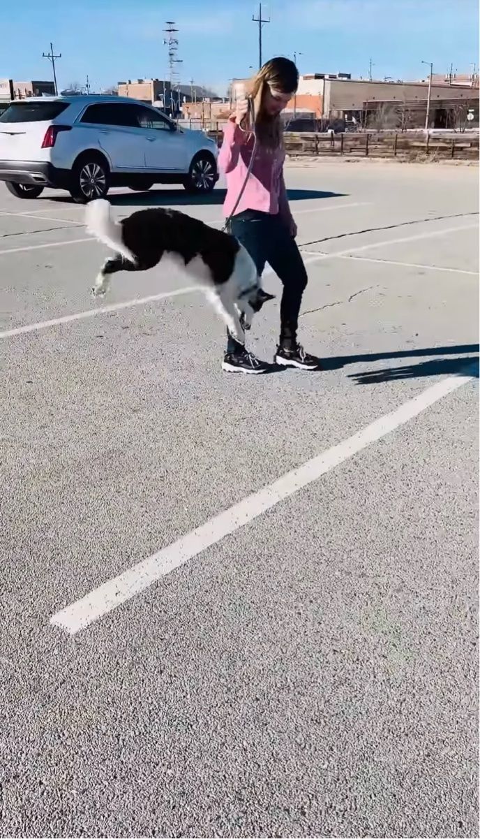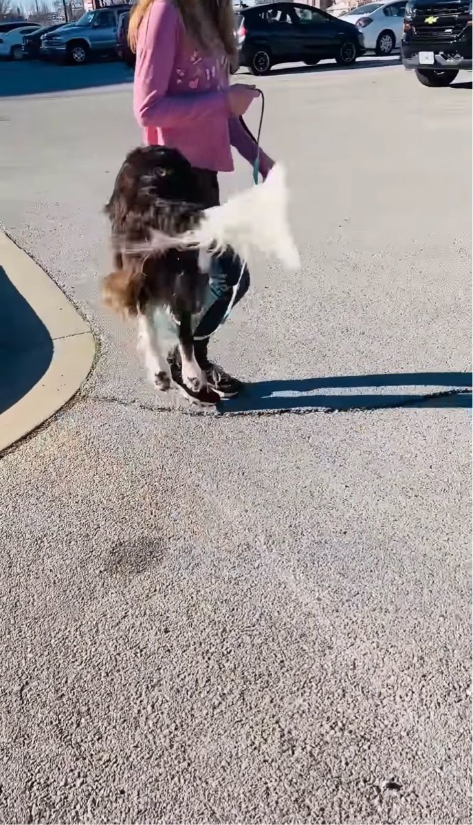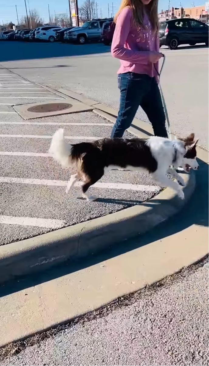 撮影者さんの娘さんと駐車場をお散歩しているボーダーコリーのゾフィ。 その時の様子は、かわいさにあふれていました!