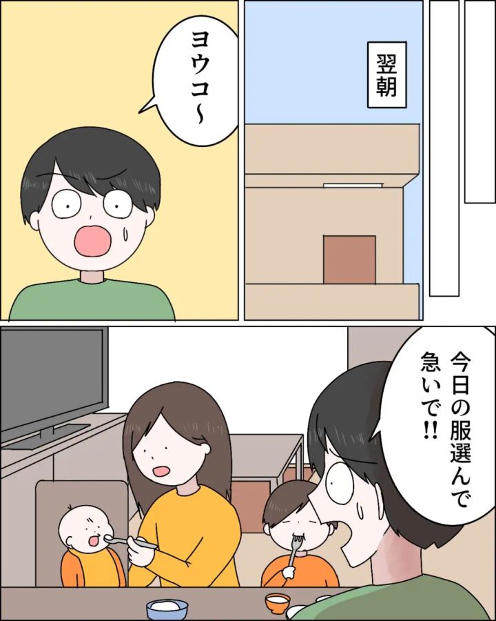 「ヨウコ~」とまた私を呼ぶマサオの声。「今日の服選んで。急いで!!」とマサオは慌てているけれど、私は相変わらず子どもたちのお世話中。